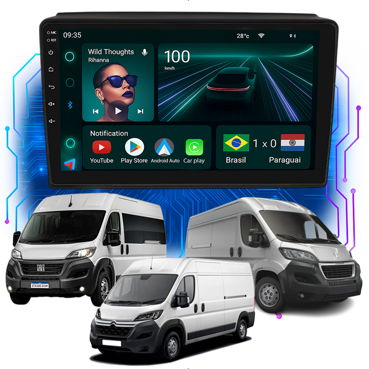 Central Multimidia 9p CarPlay + Android Auto, Wi-Fi, GPS, Câmera de Ré para Ducato, Boxer e Jumper 2018 até 2025