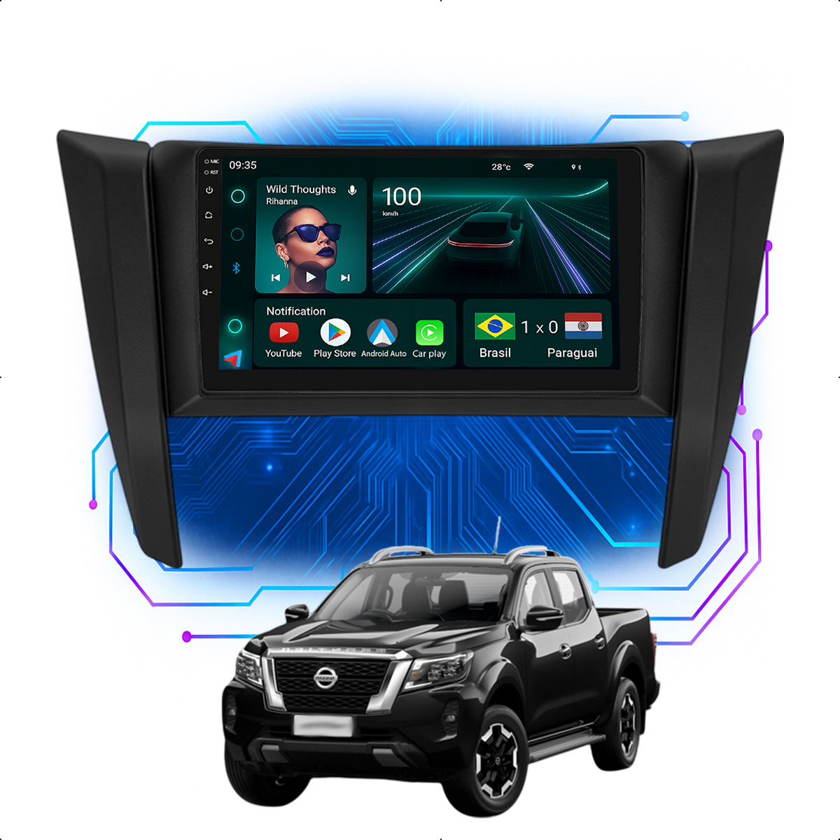 Central Multimidia 9” CarPlay + Android Auto, Wi-Fi, GPS, Câmera de Ré para Frontier 2017 a 2023