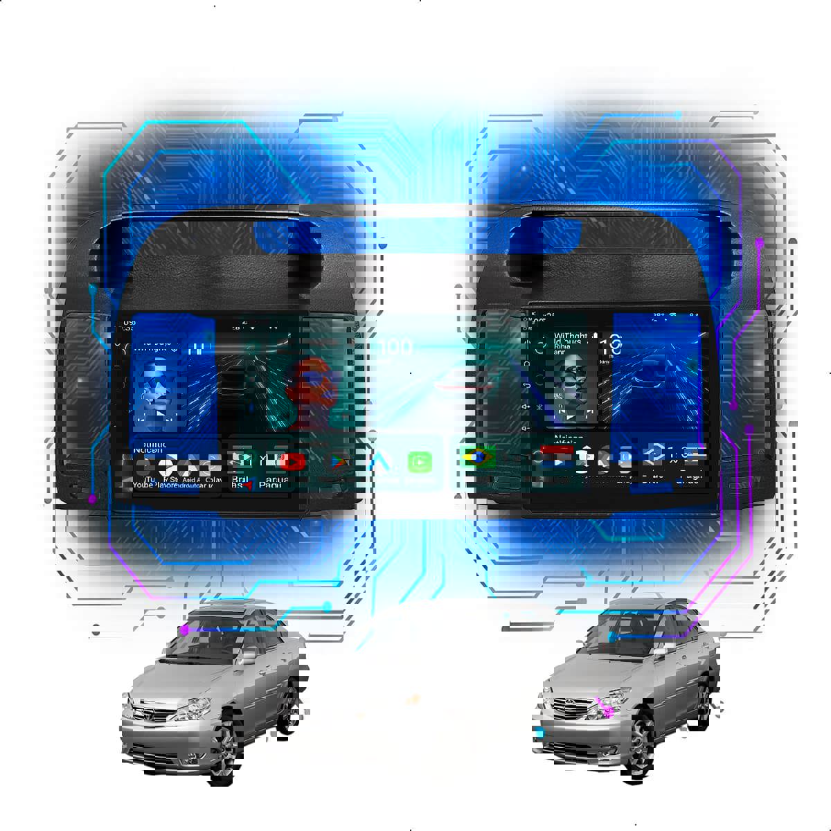 Central Multimidia 9” CarPlay + Android Auto, Wi-Fi, GPS, Câmera de Ré para Camry 2002 até 2006