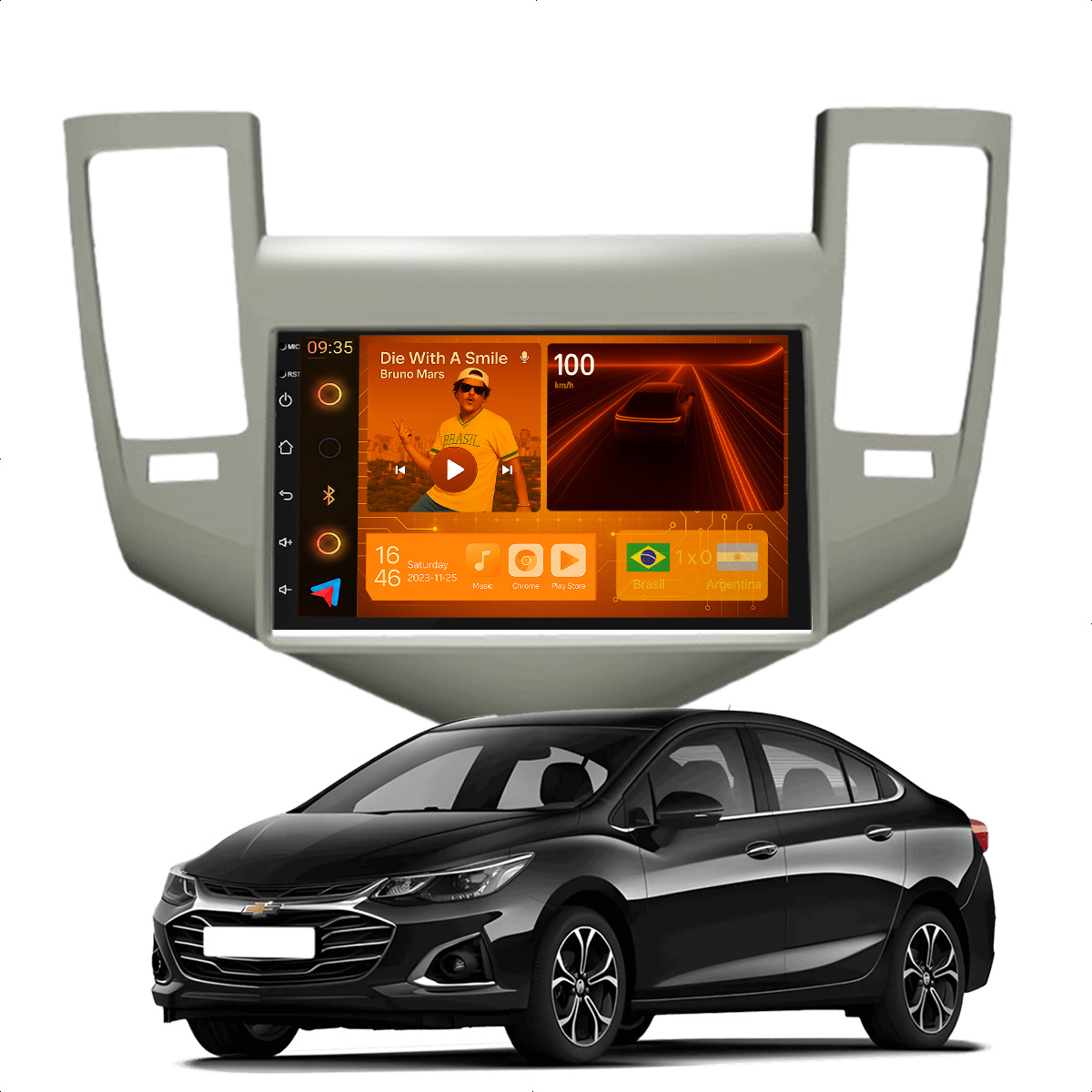 Central Multimidia 7” CarPlay + Android Auto, Wi-Fi, GPS, Câmera de Ré para Chevrolet Cruze 2011 a 2016