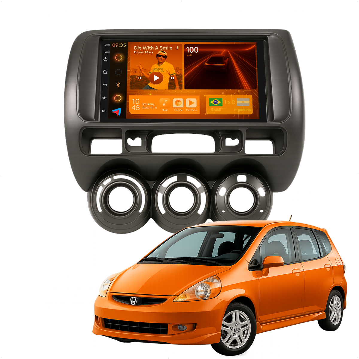 Central Multimidia 7” CarPlay + Android Auto, Wi-Fi, GPS, Câmera de Ré para Honda Fit 2004 a 2008