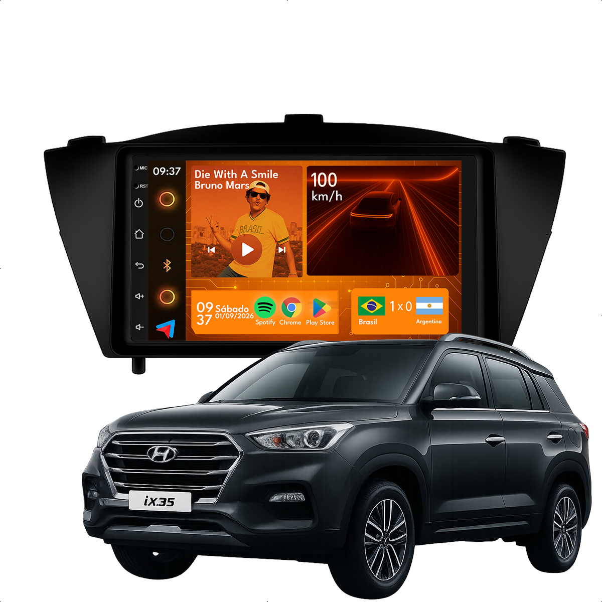 Central Multimidia 7” CarPlay + Android Auto, Wi-Fi, GPS, Câmera de Ré para Ix35 2010 a 2022