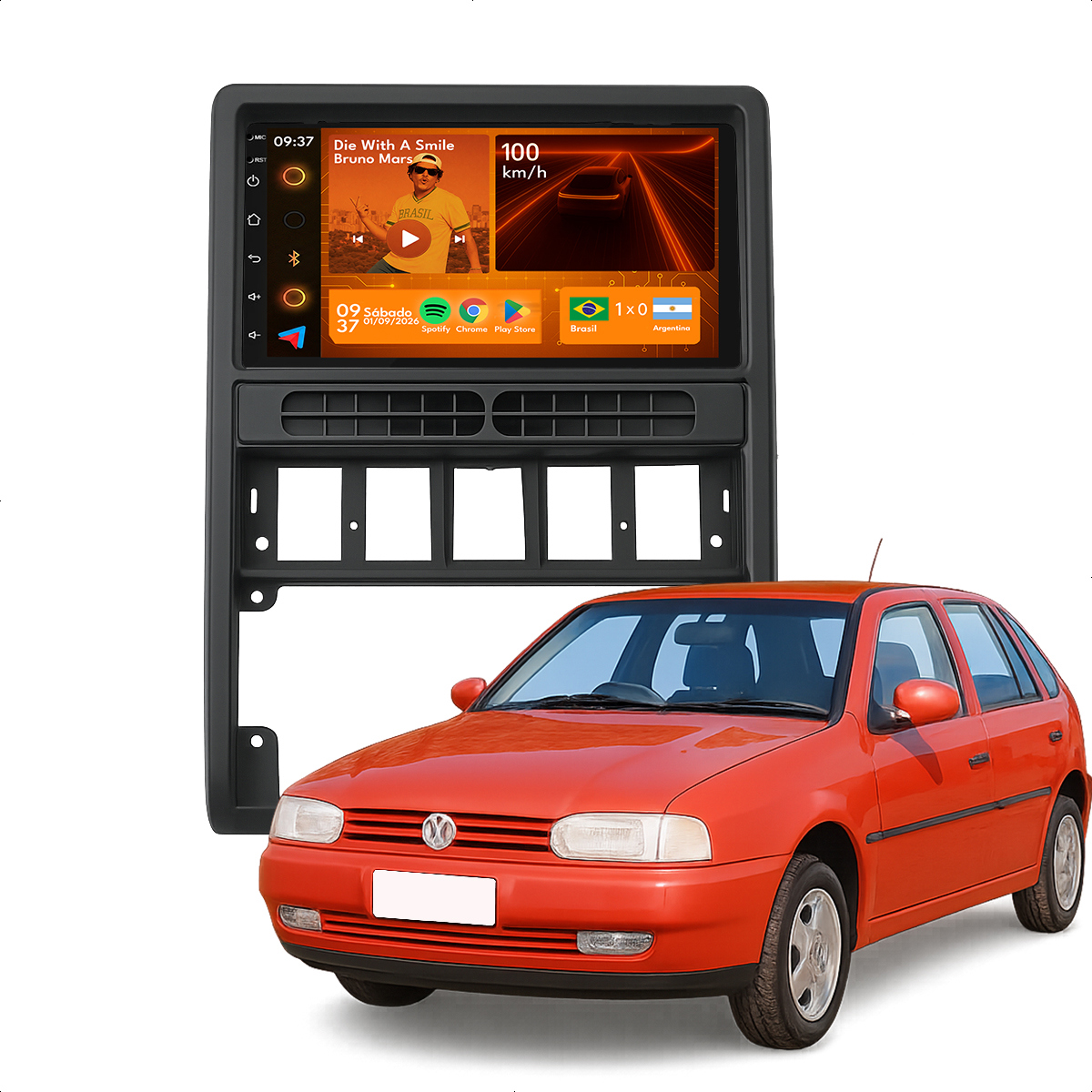 Central Multimidia 7” CarPlay + Android Auto, Wi-Fi, GPS, Câmera de Ré para Volkswagen Gol G2 1996 a 1999
