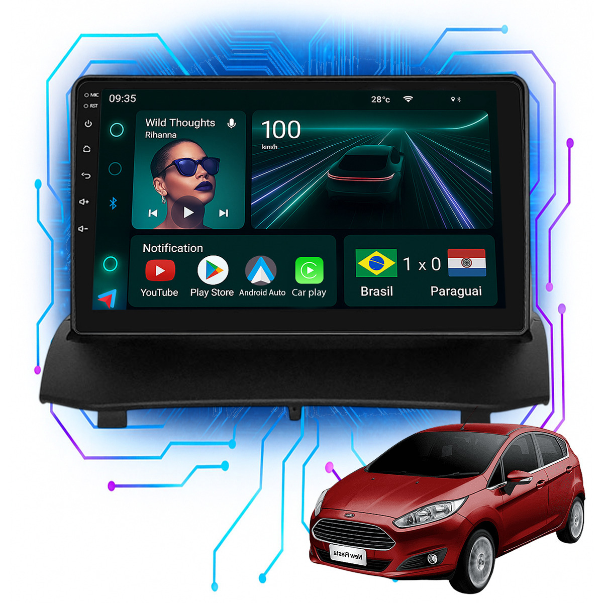 Central Multimidia 9” CarPlay + Android Auto, Wi-Fi, GPS, Câmera de Ré para New Fiesta 2012 até 2018