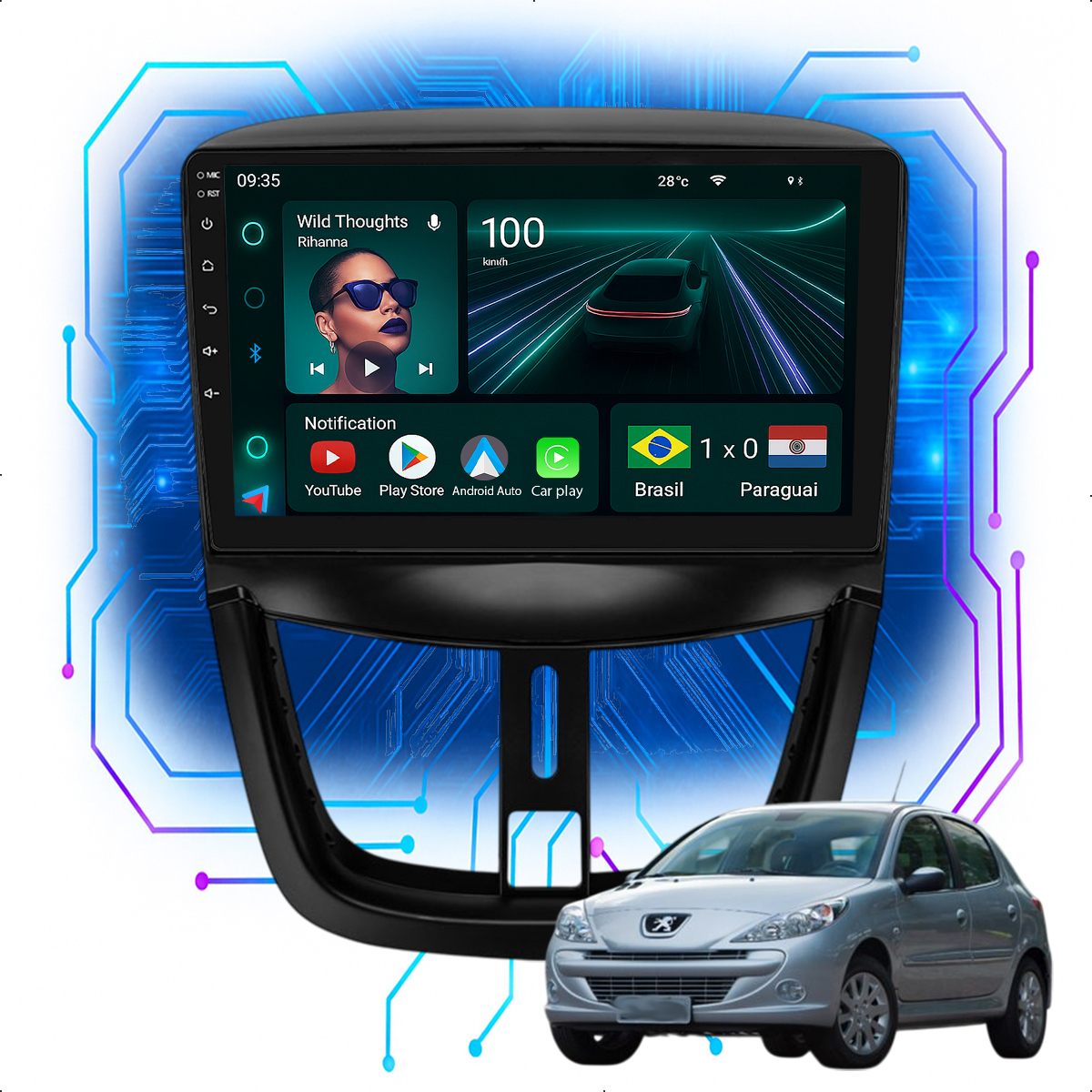 Central Multimidia 9” CarPlay + Android Auto, Wi-Fi, GPS, Câmera de Ré para Peugeot 2009 a 2015