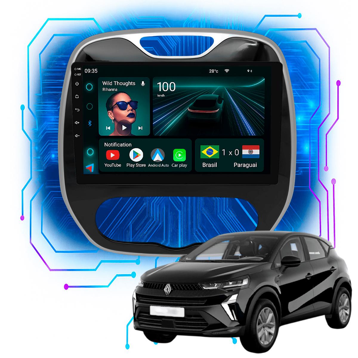 Central Multimidia 9” CarPlay + Android Auto, Wi-Fi, GPS, Câmera de Ré para Captur 2017 até 2024