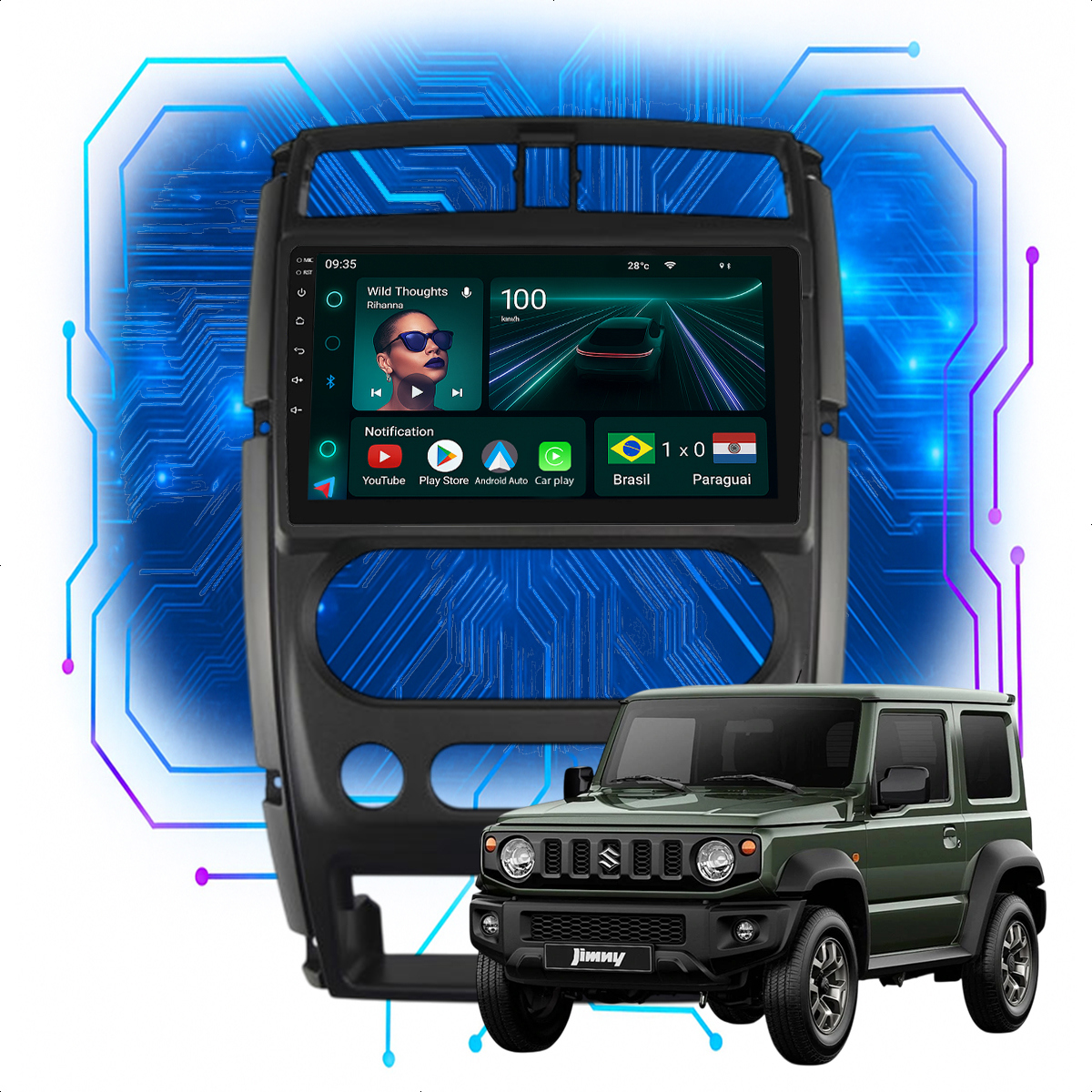 Central Multimidia 9” CarPlay + Android Auto, Wi-Fi, GPS, Câmera de Ré para Jimny 2008 a 2018