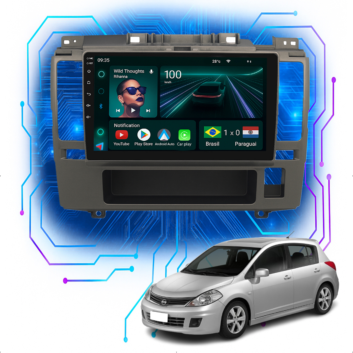 Central Multimidia 9” CarPlay + Android Auto, Wi-Fi, GPS, Câmera de Ré para Nissan Tiida 2008 a 2013