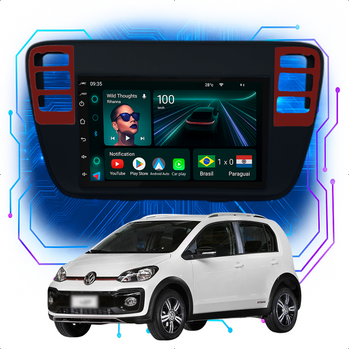 Central Multimidia 7” CarPlay + Android Auto, Wi-Fi, GPS, Câmera de Ré para Volkswagen Up 2014 até 2017