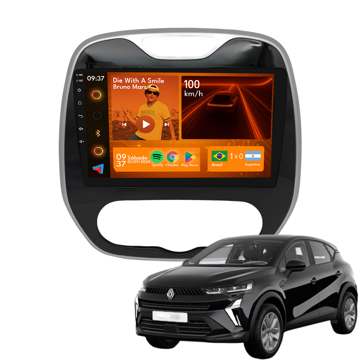 Central Multimidia 9” CarPlay + Android Auto, Wi-Fi, GPS, Câmera de Ré para Captur 2017 a 2024