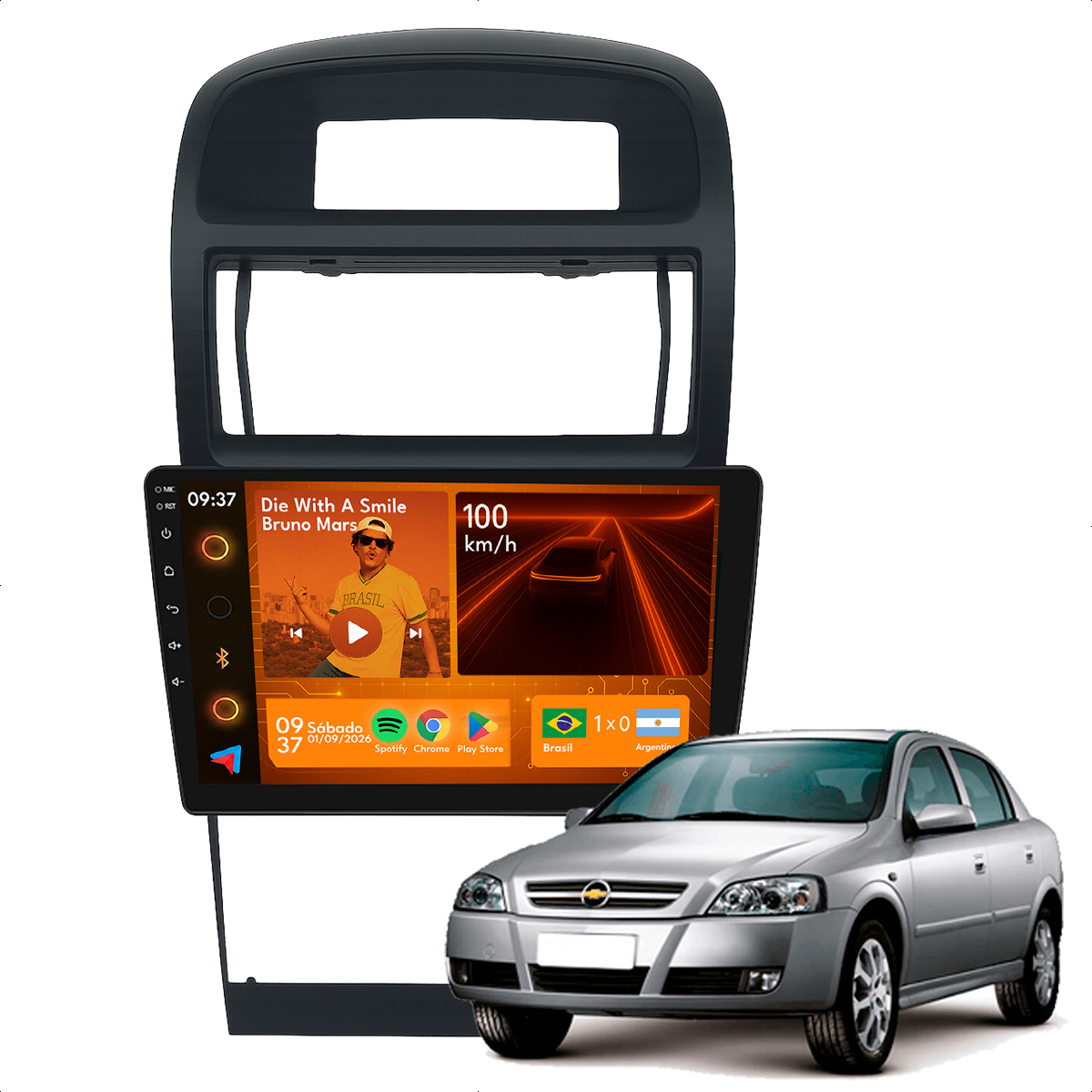 Central Multimidia 9” CarPlay + Android Auto, Wi-Fi, GPS, Câmera de Ré para Astra 1998 a 2012