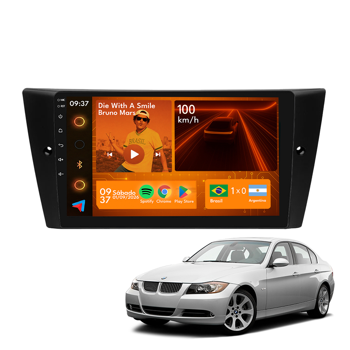 Central Multimidia 9” CarPlay + Android Auto, Wi-Fi, GPS, Câmera de Ré para Bmw Serie 3 E90 E093 2005 até 2012