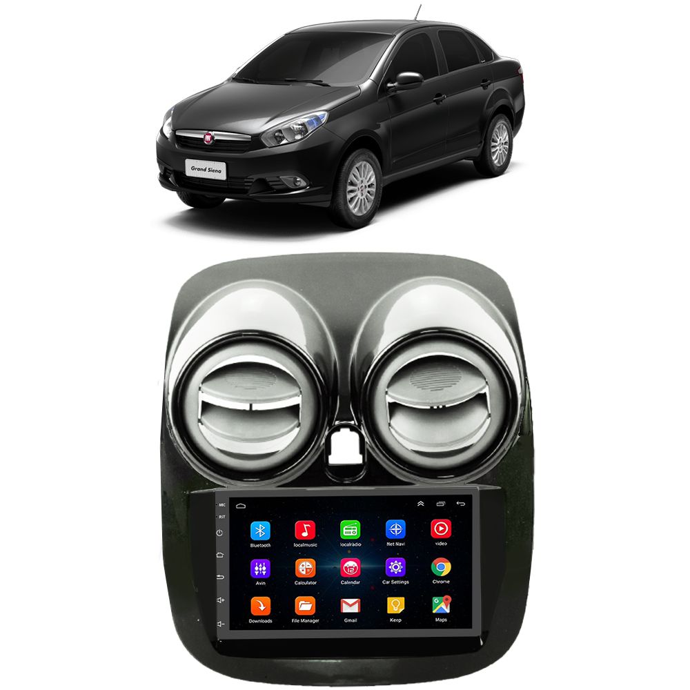 Kit Central Multimidia Android Fiat Grand Siena 2012 2013 2014 2015 2016 2017 2018 Gps Tv BT Wifi + Moldura Painel & Câmera de Ré