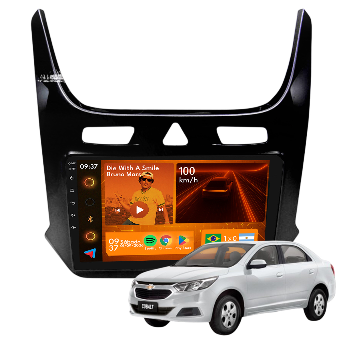 Central Multimidia 9” CarPlay + Android Auto, Wi-Fi, GPS, Câmera de Ré para Chevrolet Cobalt 2012 a 2020