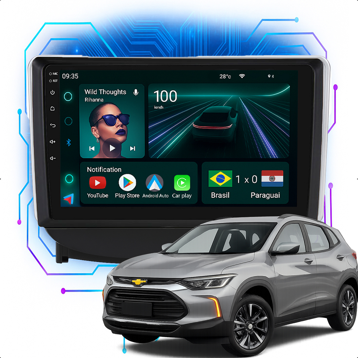 Central Multimidia 9” CarPlay + Android Auto, Wi-Fi, GPS, Câmera de Ré para Tracker 2020 a 2030