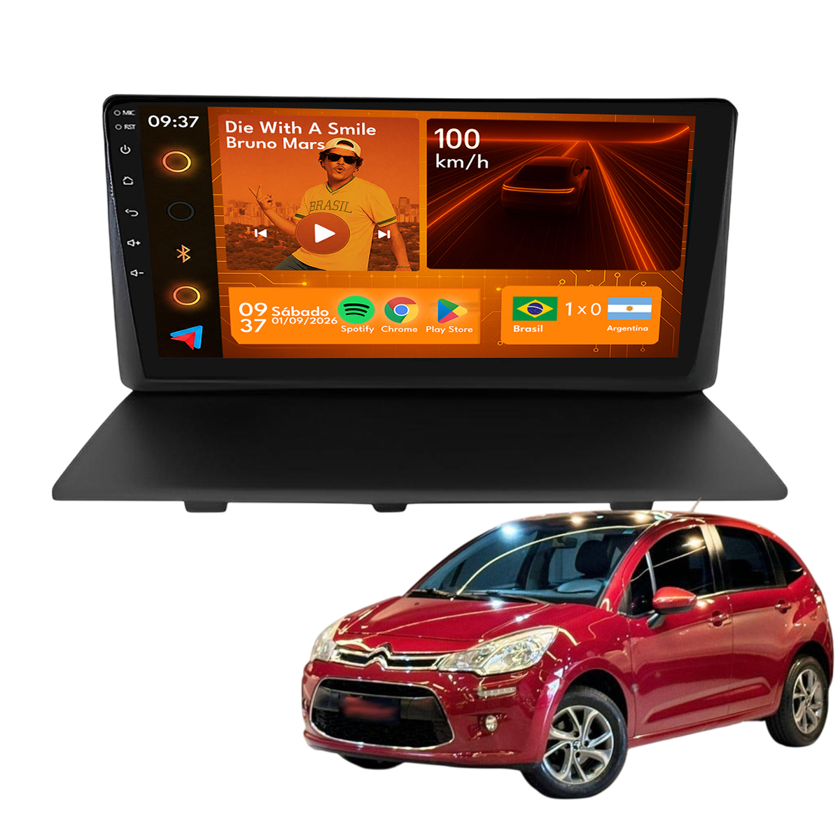 Central Multimidia 9” CarPlay + Android Auto, Wi-Fi, GPS, Câmera de Ré para Citroen C3 2013 até 2019