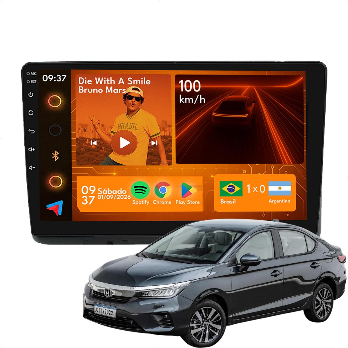 Central Multimidia 9” CarPlay + Android Auto, Wi-Fi, GPS, Câmera de Ré para Honda City 2021 a 2023