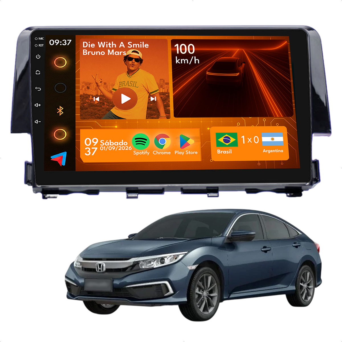 Central Multimidia 9” CarPlay + Android Auto, Wi-Fi, GPS, Câmera de Ré para Honda Civic G10 2017 a 2021