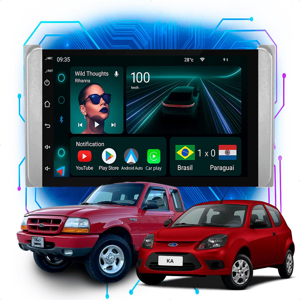 Central Multimidia 7” CarPlay + Android Auto, Wi-Fi, GPS, Câmera de Ré para FORD KA 2009 A 2011 RANGER 2000 A 2011