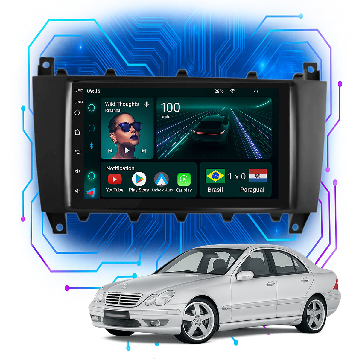 Central Multimidia 7” CarPlay + Android Auto, Wi-Fi, GPS, Câmera de Ré para Mercedes Benz 2005 a 2007