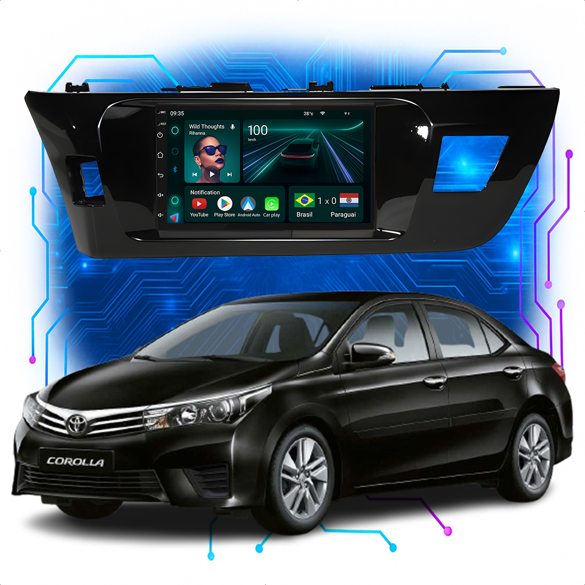 Central Multimidia 7” CarPlay + Android Auto, Wi-Fi, GPS, Câmera de Ré para Corolla 2015 a 2017
