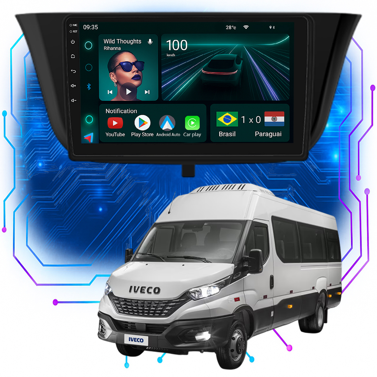 Central Multimidia 9” CarPlay + Android Auto, Wi-Fi, GPS, Câmera de Ré para Iveco Daily 2020 até 2024