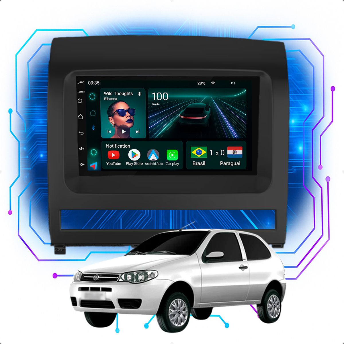 Central Multimidia 7” CarPlay + Android Auto, Wi-Fi, GPS, Câmera de Ré para Palio Celebration 2004 a 2014