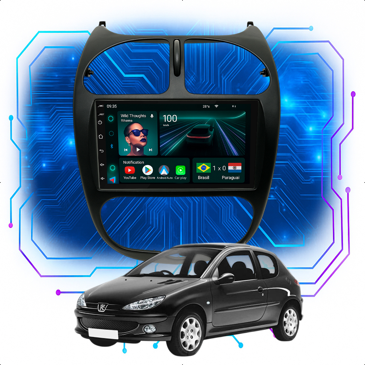 Central Multimidia 7” CarPlay + Android Auto, Wi-Fi, GPS, Câmera de Ré para Peugeot 206 2000 até 2010