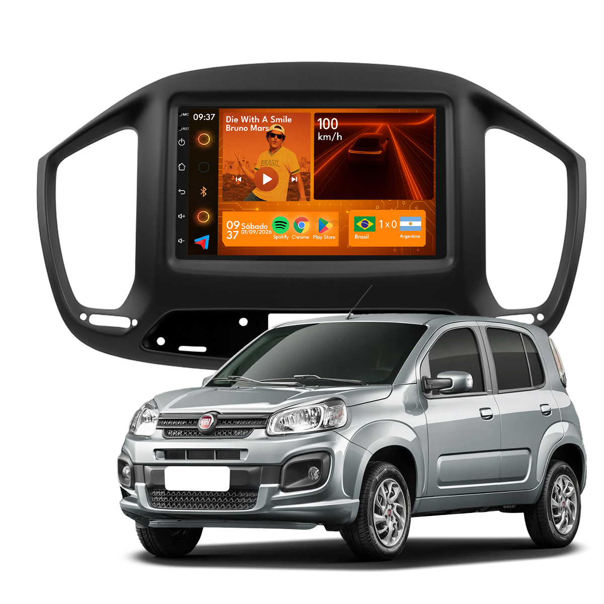 Central Multimidia 7” CarPlay + Android Auto, Wi-Fi, GPS, Câmera de Ré para Uno 2015 a 2021