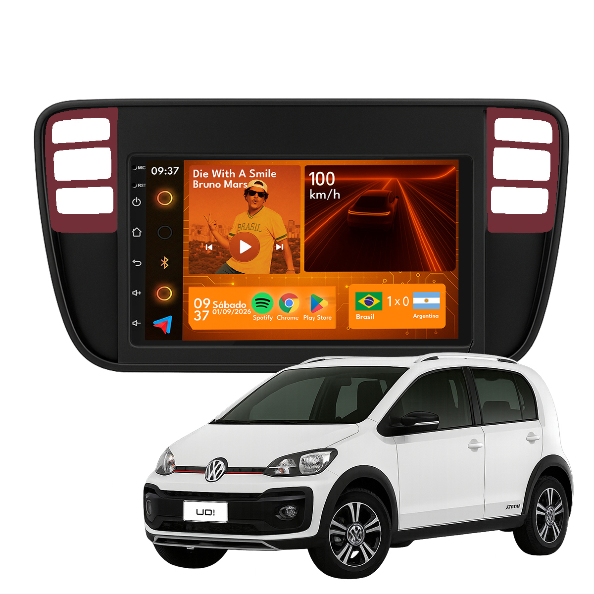 Central Multimidia 7” CarPlay + Android Auto, Wi-Fi, GPS, Câmera de Ré para Up 2014 até 2016