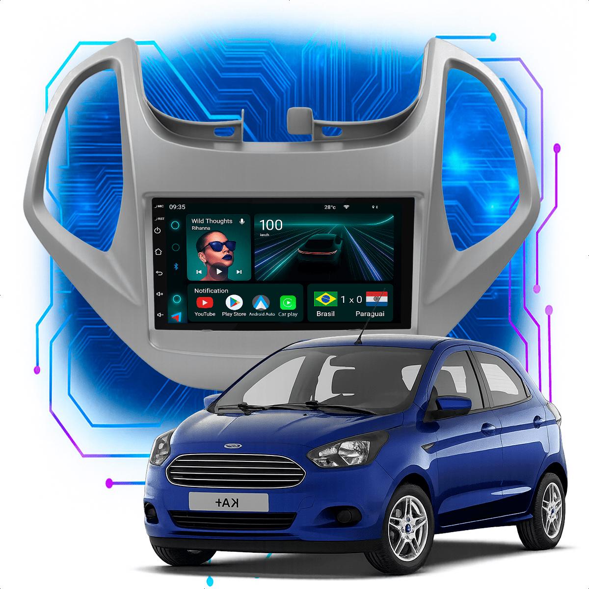 Central Multimidia 7” CarPlay + Android Auto, Wi-Fi, GPS, Câmera de Ré para Ford Ka 2015 até 2017