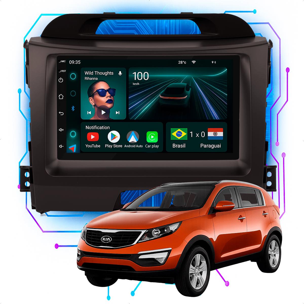 Central Multimidia 7” CarPlay + Android Auto, Wi-Fi, GPS, Câmera de Ré para Sportage 2011 a 2016