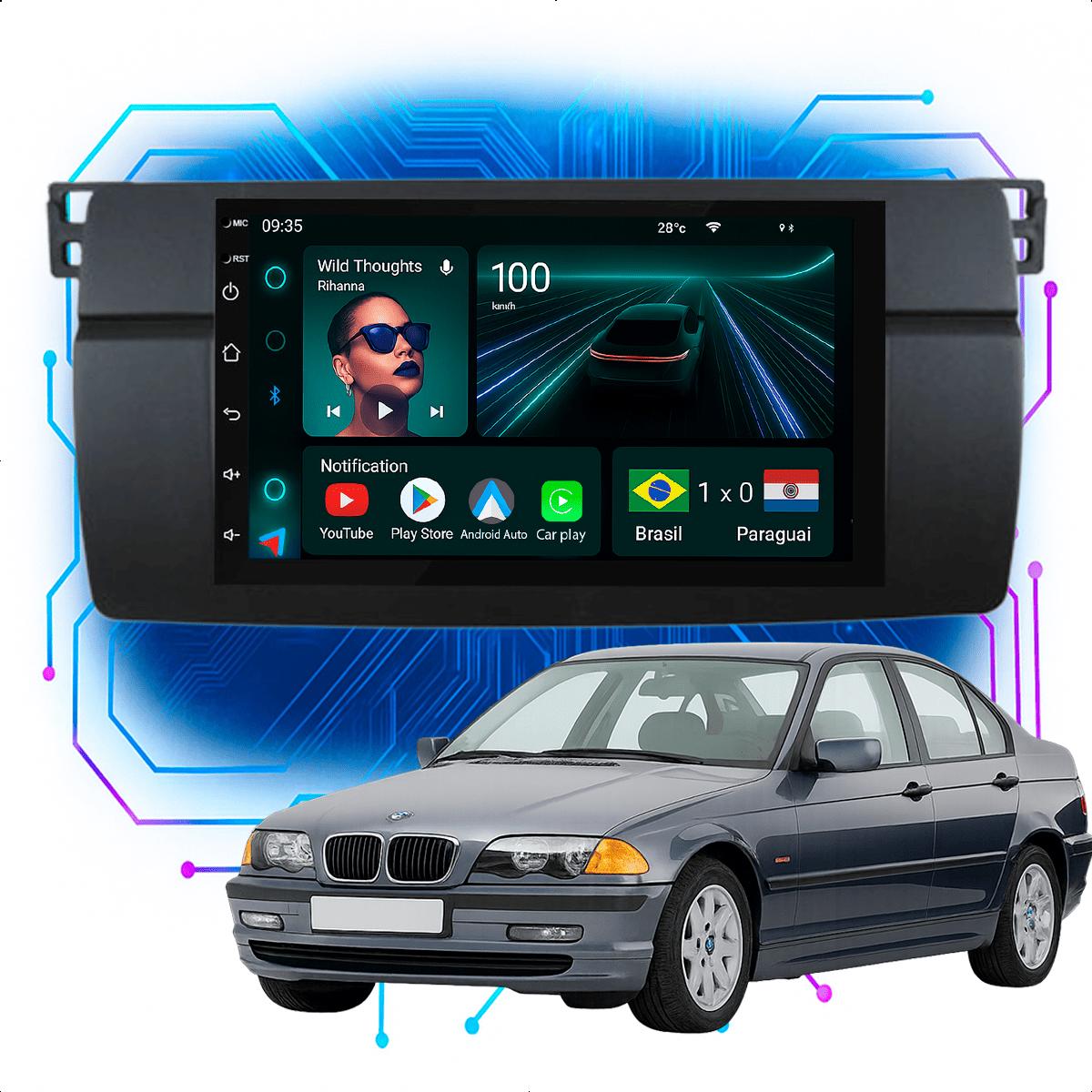 Central Multimidia 7” CarPlay + Android Auto, Wi-Fi, GPS, Câmera de Ré para BMW 1999 a 2006