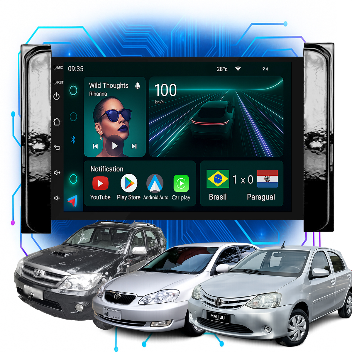 Central Multimidia 7” CarPlay + Android Auto, Wi-Fi, GPS, Câmera de Ré para Corolla 2003 a 2008