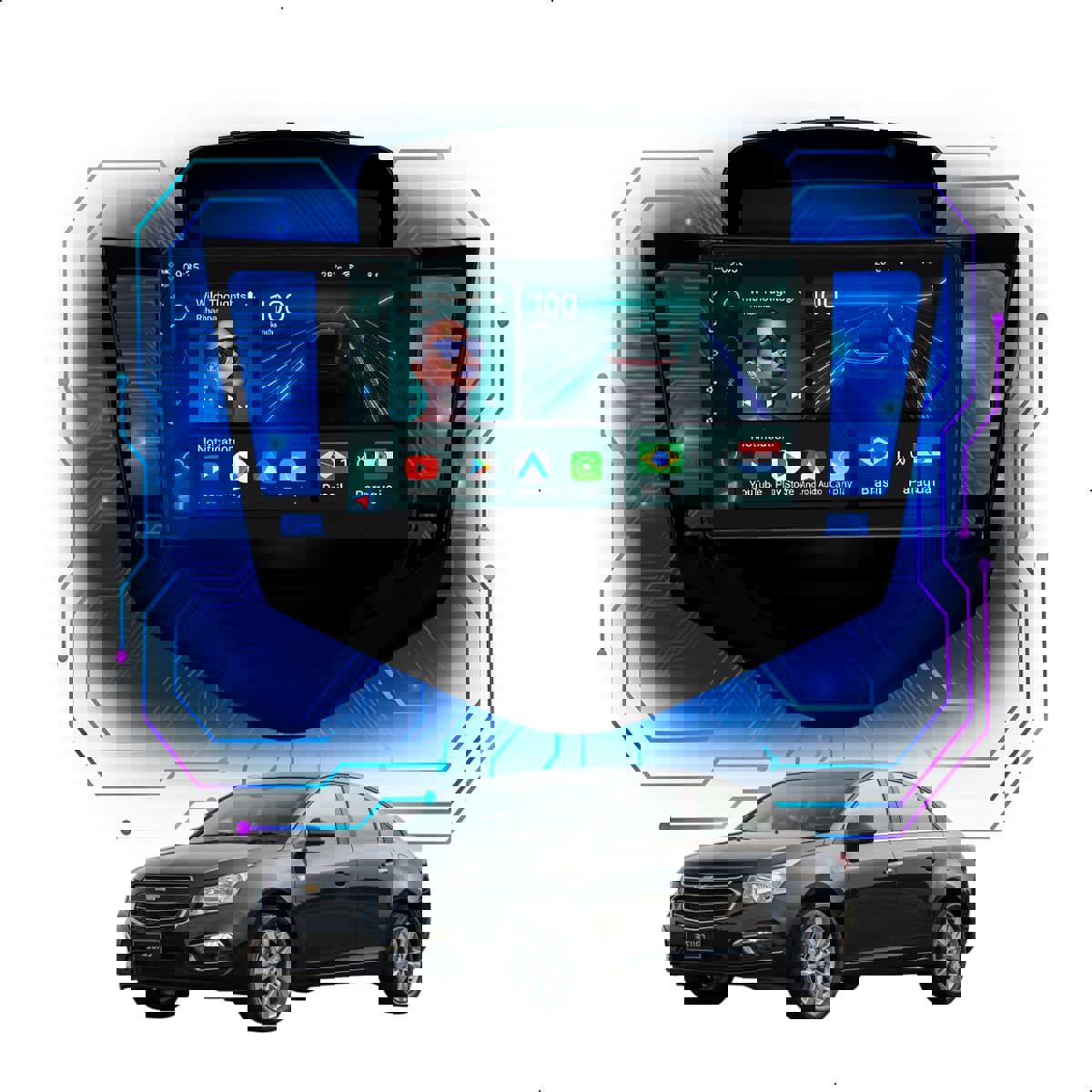 Central Multimidia 9” CarPlay + Android Auto, Wi-Fi, GPS, Câmera de Ré para Cruze 2011 até 2016