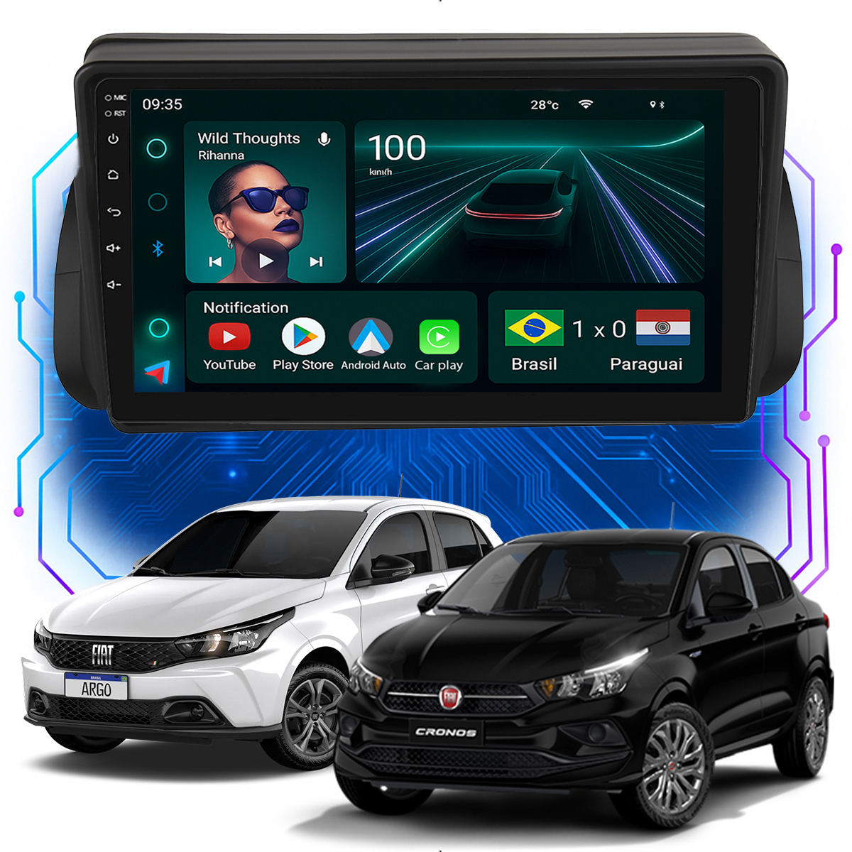 Central Multimidia 9” CarPlay + Android Auto, Wi-Fi, GPS, Câmera de Ré para Argo 2018 até 2026