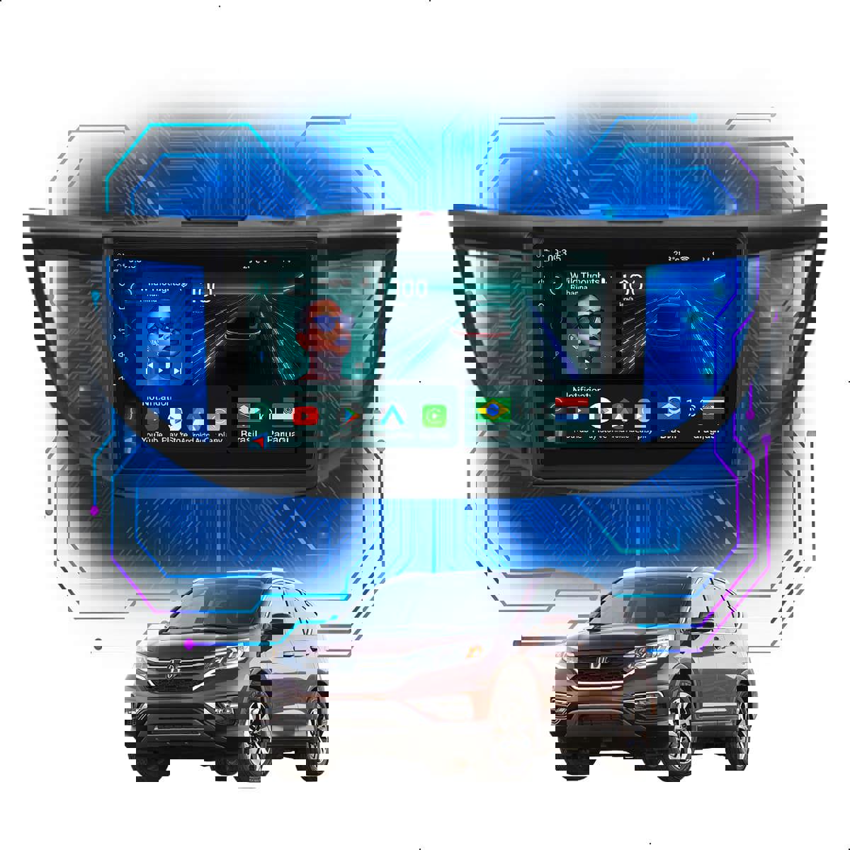 Central Multimidia 9” CarPlay + Android Auto, Wi-Fi, GPS, Câmera de Ré para Crv 2012 até 2016