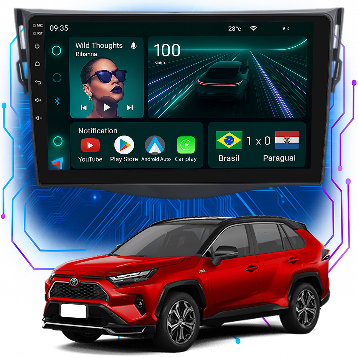 Central Multimidia 7” CarPlay + Android Auto, Wi-Fi, GPS, Câmera de Ré para Rav4 2006 até 2012