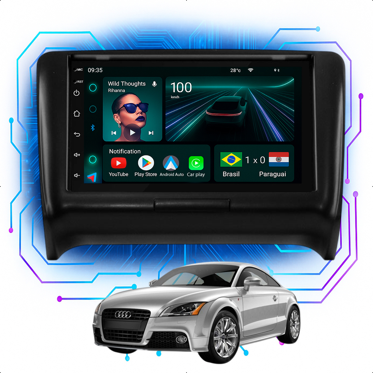 Central Multimidia 7” CarPlay + Android Auto, Wi-Fi, GPS, Câmera de Ré para Audi TT 2000 até 2014