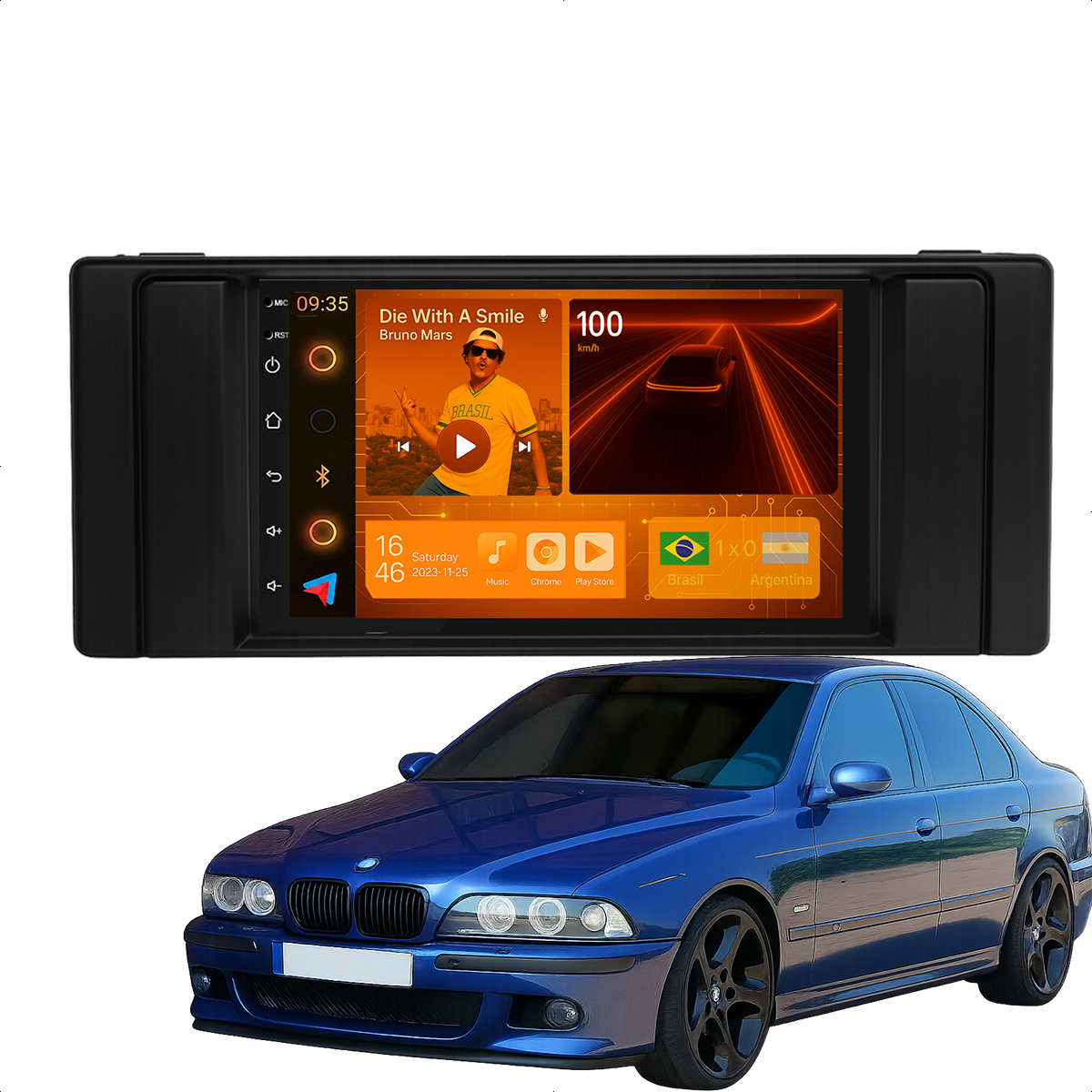 Central Multimidia 7” CarPlay + Android Auto, Wi-Fi, GPS, Câmera de Ré para BMW SERIE 5 1995 a 2006