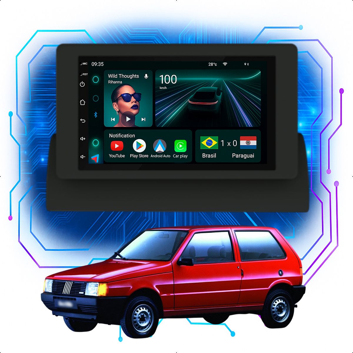 Central Multimidia 7” CarPlay + Android Auto, Wi-Fi, GPS, Câmera de Ré para Fiat Uno 1995 até 2013