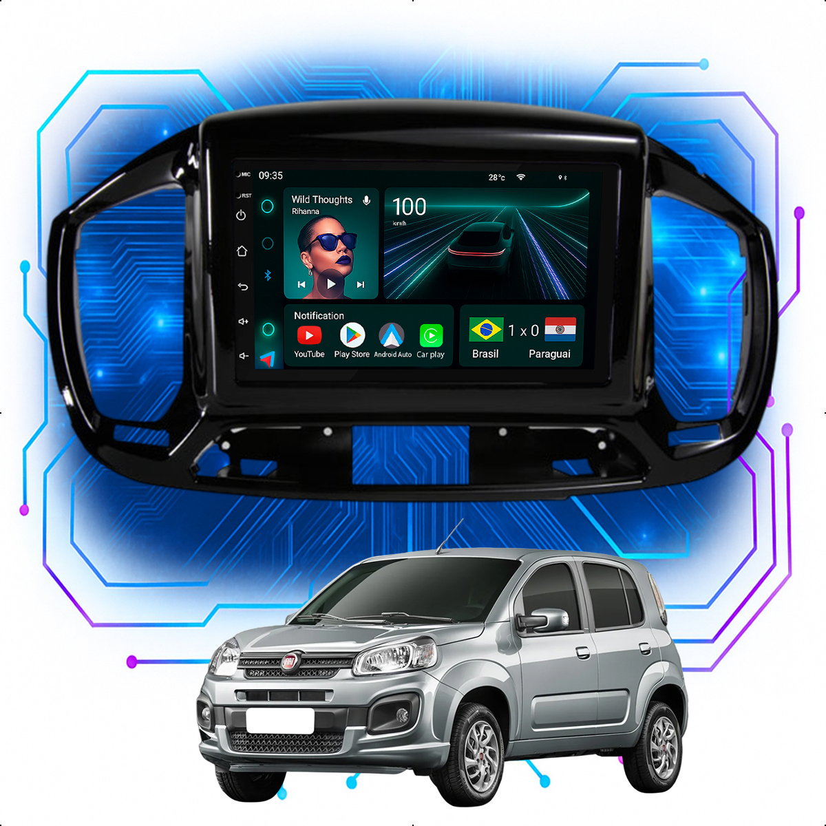 Central Multimidia 7” CarPlay + Android Auto, Wi-Fi, GPS, Câmera de Ré para Fiat Uno 2015 até 2021