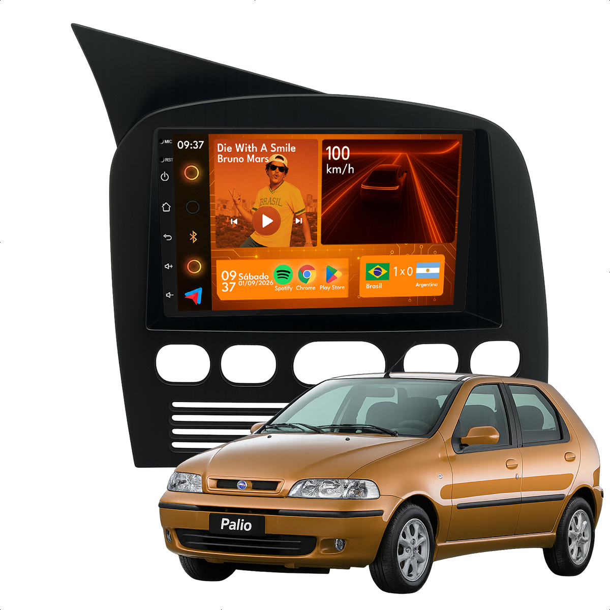 Central Multimidia 7” CarPlay + Android Auto, Wi-Fi, GPS, Câmera de Ré para Fiat Palio 1996 a 2003