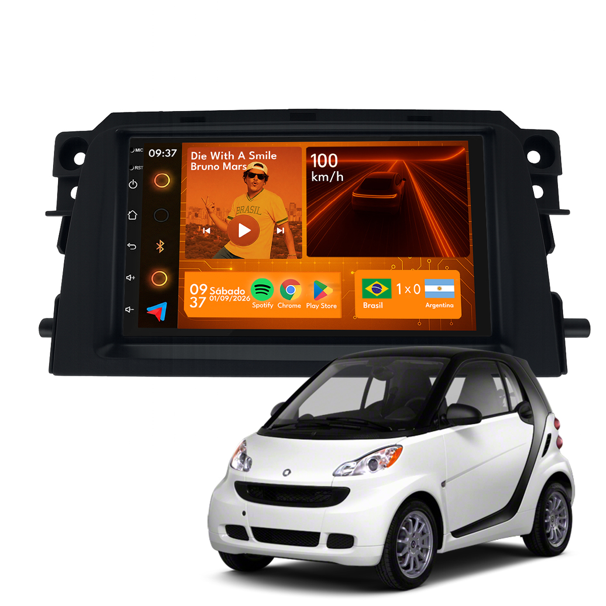 Central Multimidia 7” CarPlay + Android Auto, Wi-Fi, GPS, Câmera de Ré para Smart Fortwo 2013 a 2016