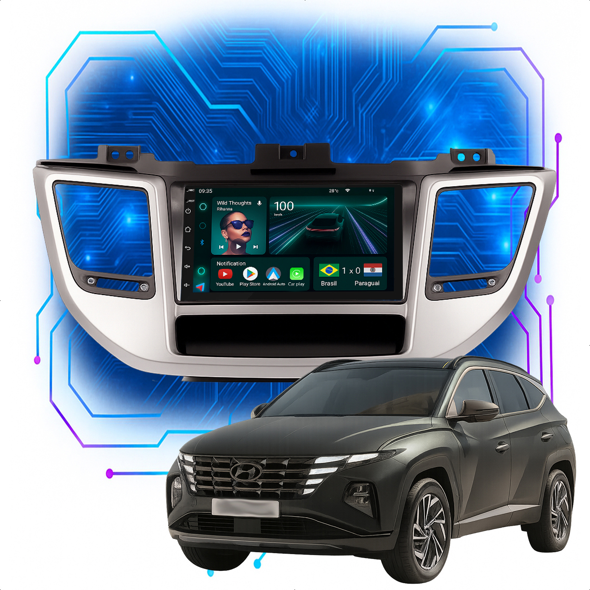 Central Multimidia 7” CarPlay + Android Auto, Wi-Fi, GPS, Câmera de Ré para Tucson 2017 a 2024