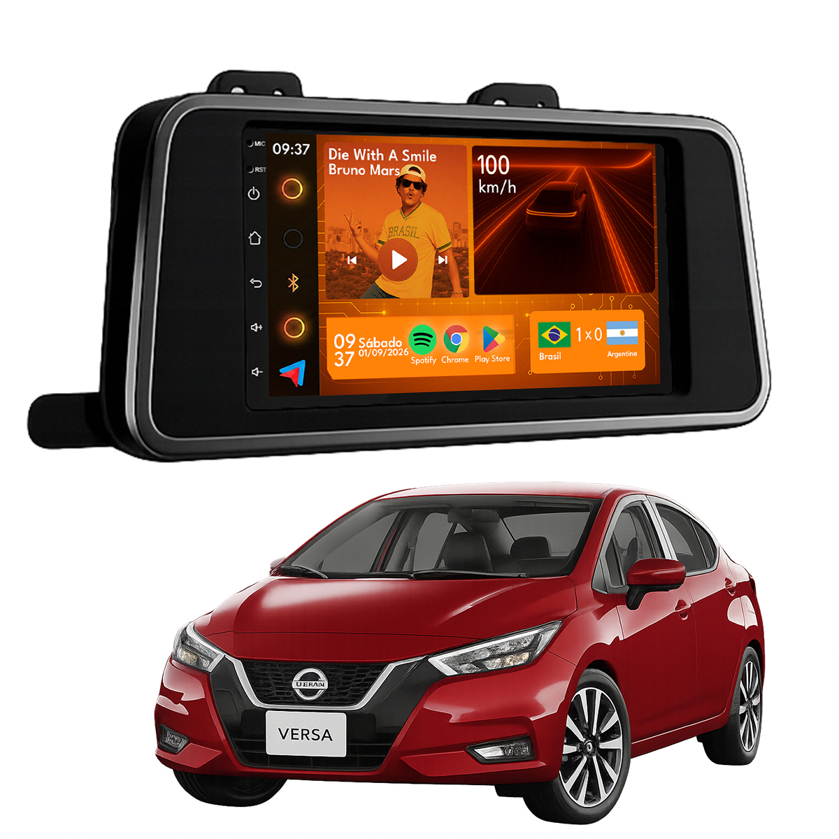 Central Multimidia 7” CarPlay + Android Auto, Wi-Fi, GPS, Câmera de Ré para Versa 2021 a 2023