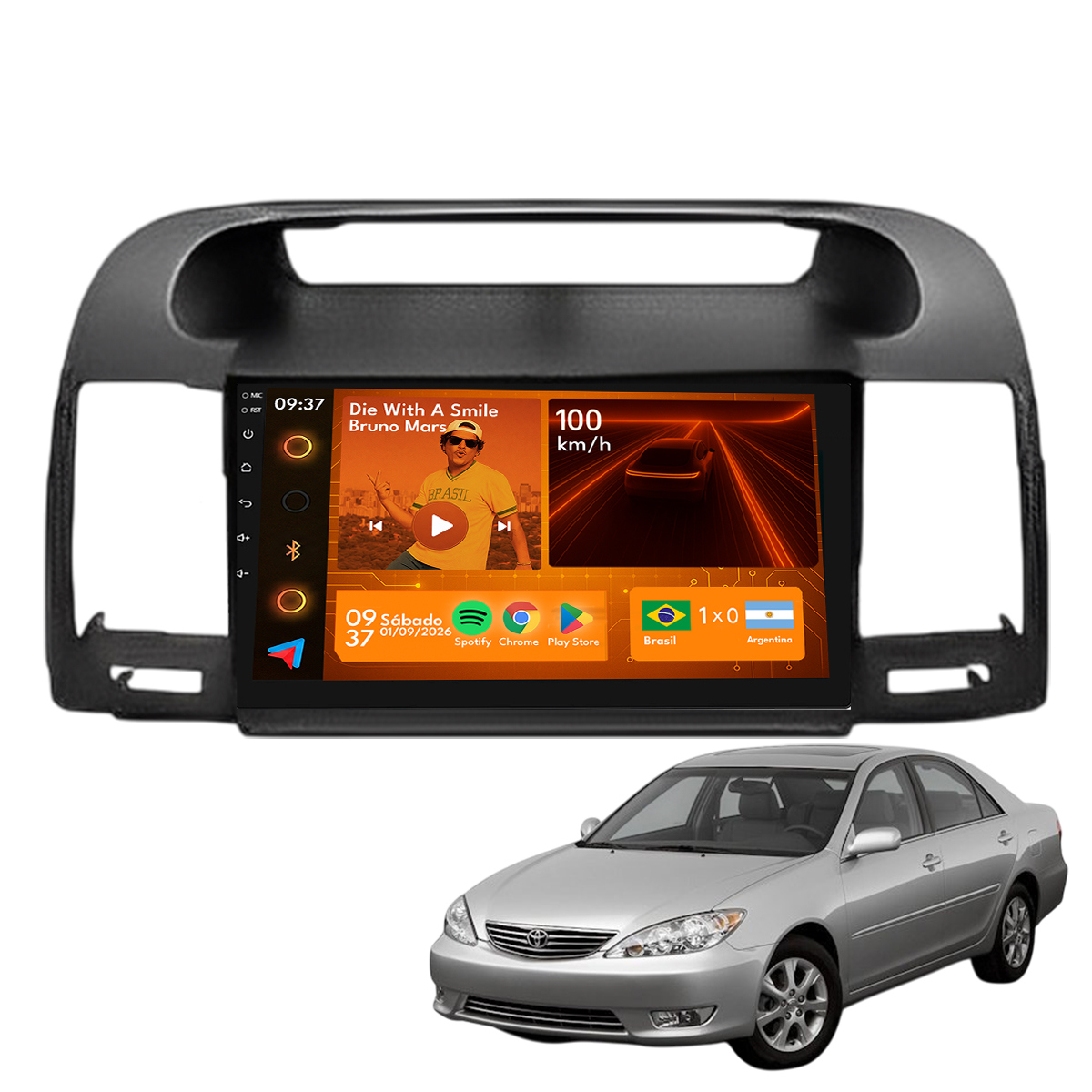 Central Multimidia 9” CarPlay + Android Auto, Wi-Fi, GPS, Câmera de Ré para Toyota Camry 2002 a 2006