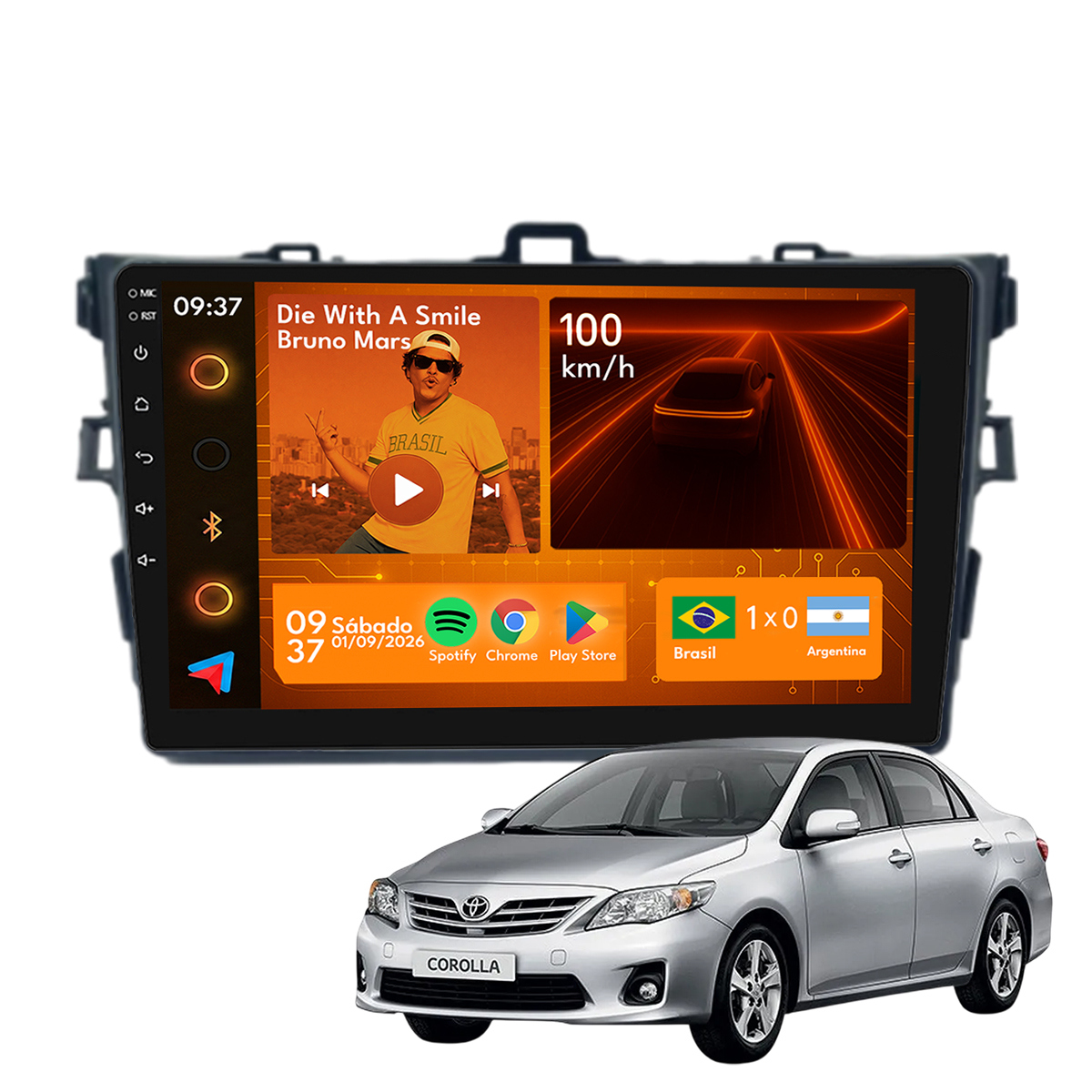 Central Multimidia 9” CarPlay + Android Auto, Wi-Fi, GPS, Câmera de Ré para Corolla 2009 a 2014